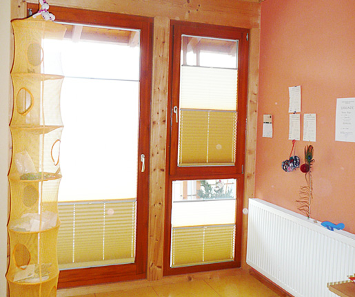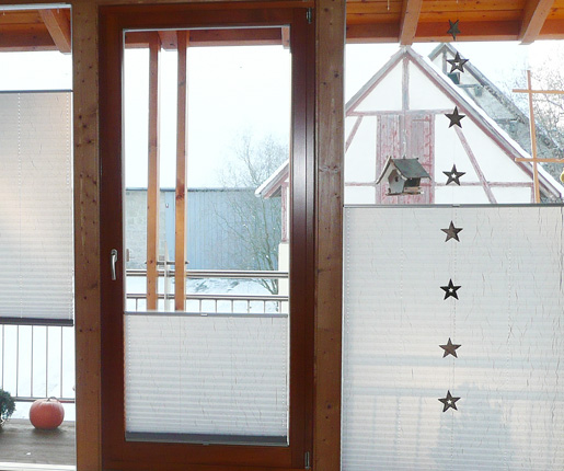 Innenliegender Sonnenschutz kühlt nicht nur die Raumtemperatur , verdunkelt bei Bedarf und spart nebenbei noch Energiekosten, er ist oft auch ästhetischer Blickfang im Raum.